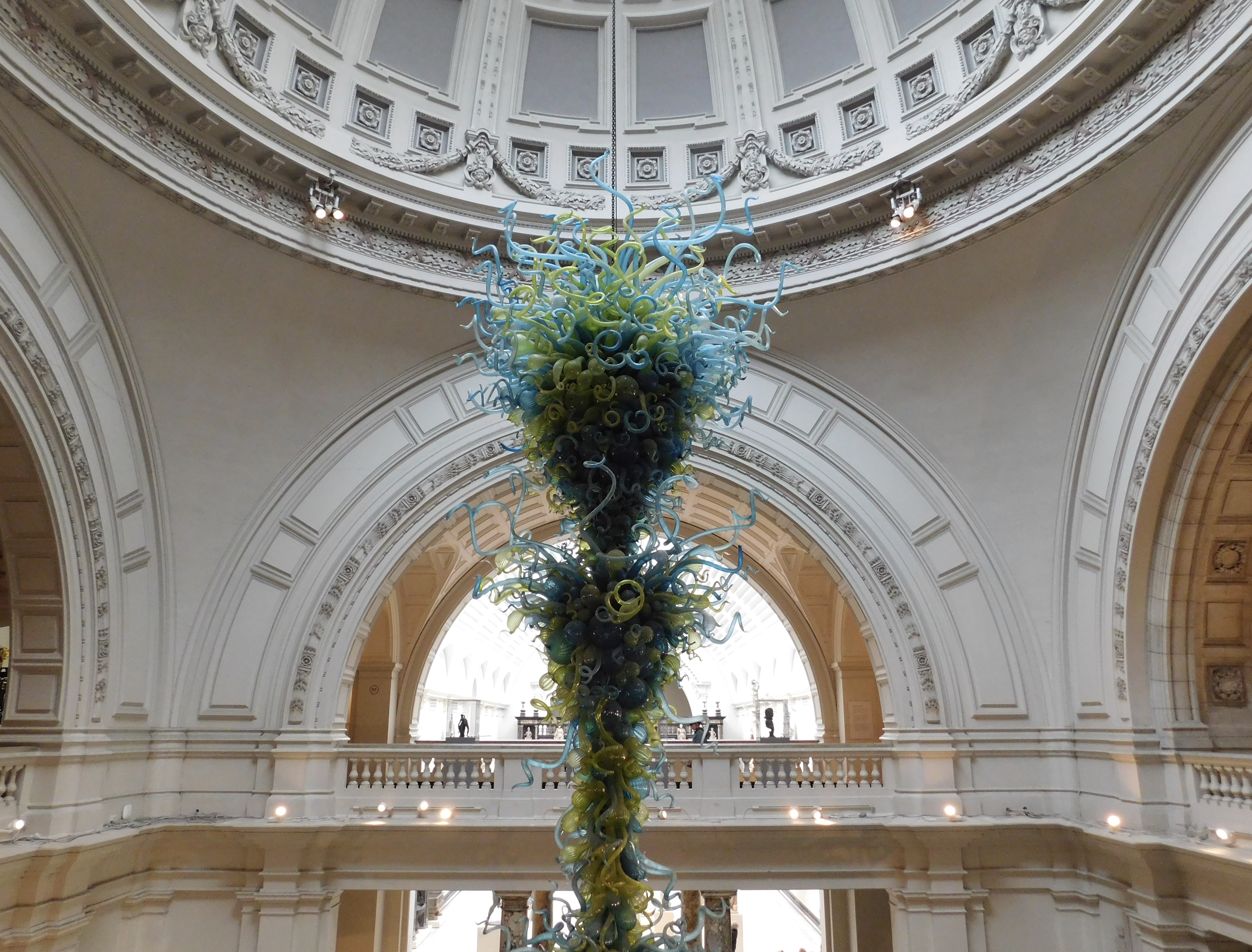 Glasswork by Chihuly hanging near the entrance of the Victoria and Albert Museum. 📸: Stephanie Gilbert