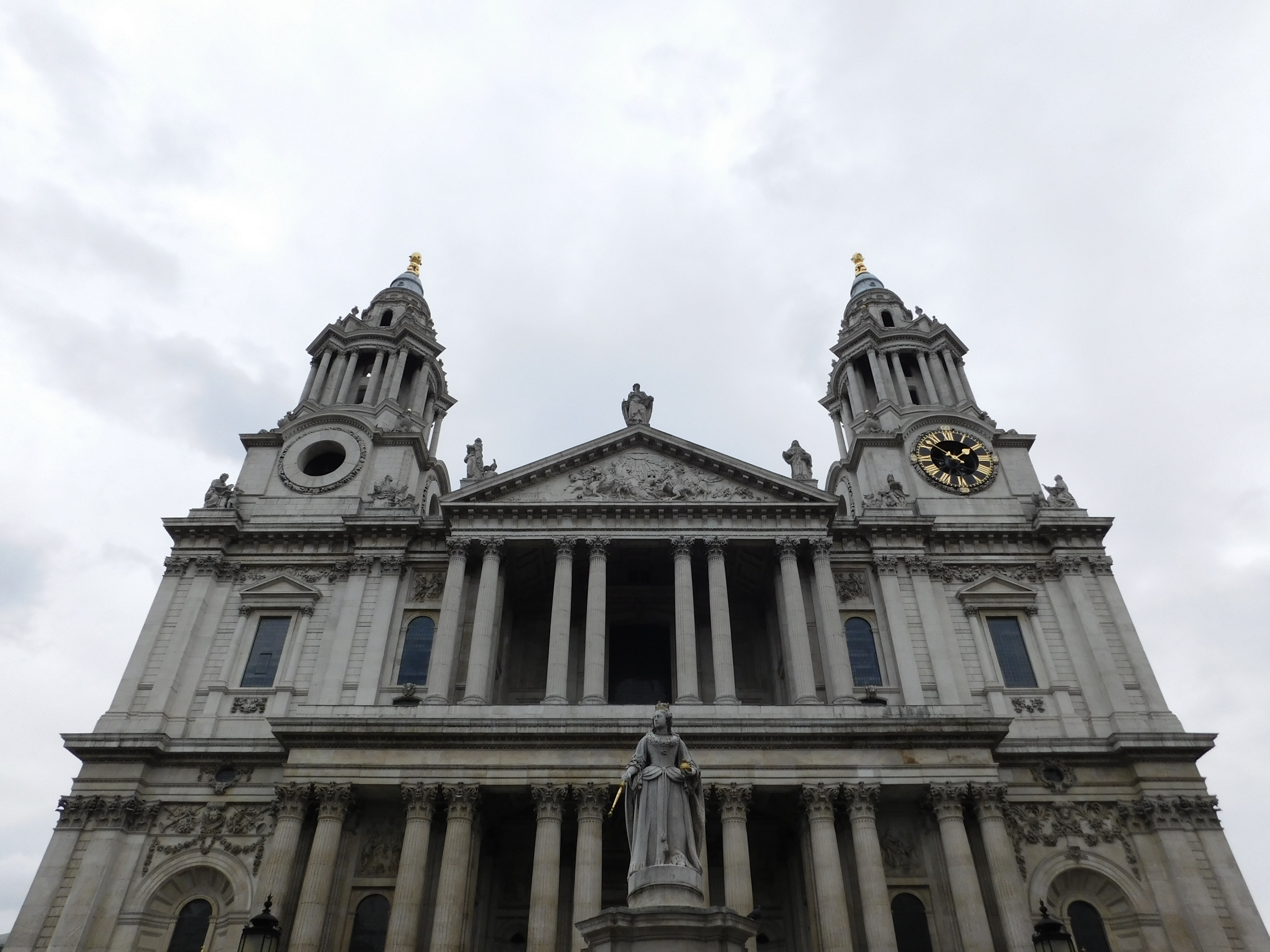 View of the front of St. Paul’s Cathedral with statue of Queen Anne. 📸: Stephanie Gilbert